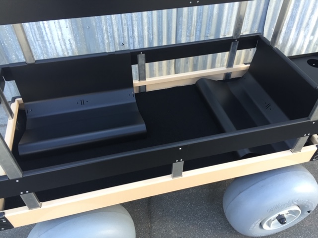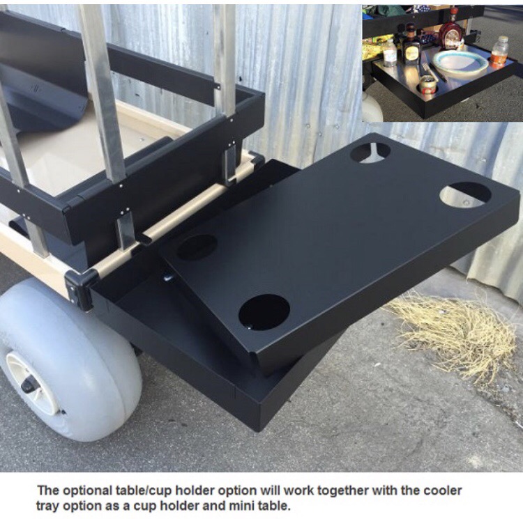 The cooler tray comes in two sizes – small: 20″ x 12″ for our smallest wagon(20″ x 40″ ), and large: 24″ x 16″ for all larger wagons. All trays are black.