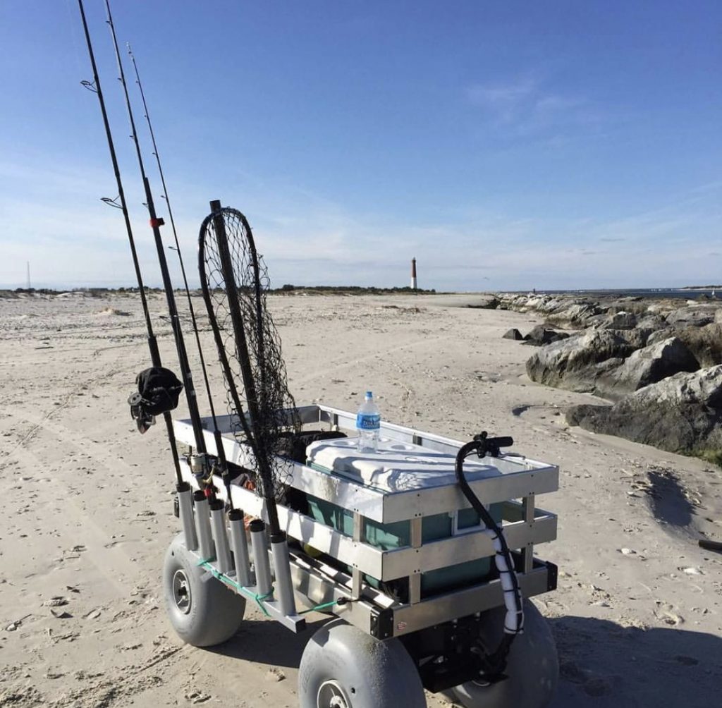 The Wheeleez® come in two sizes; 12″ and 16″ wheels. The larger wheels (additional $200) are recommended for the larger wagons and provide better traction, comfort and load capacity on the sand. The 16″ wheels/tires do add additional width to the overall dimensions of the wagon.